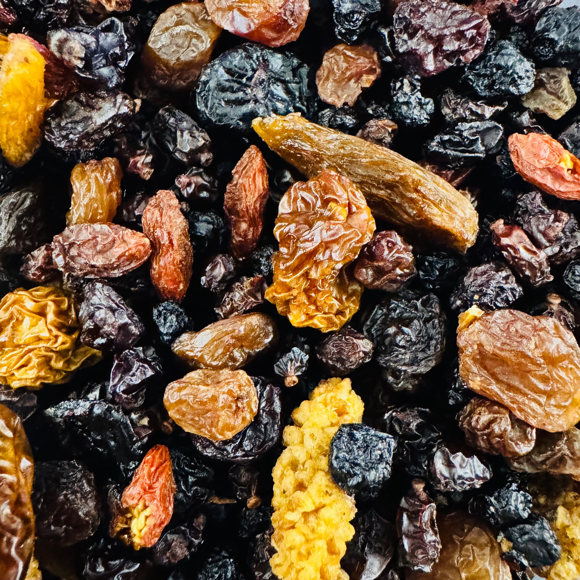 Mélange dynamique BIO : raisons (sultan, vert, noir), physalis, goji, airelles, myrtilles, mûres, épine vinette.