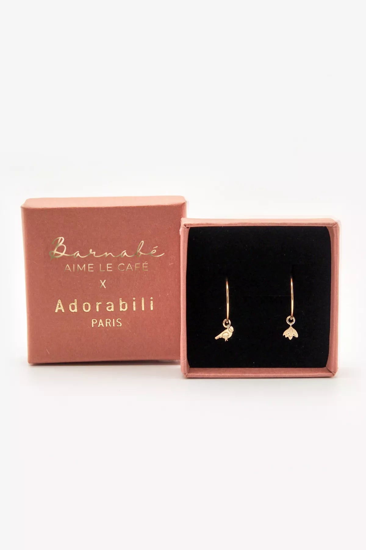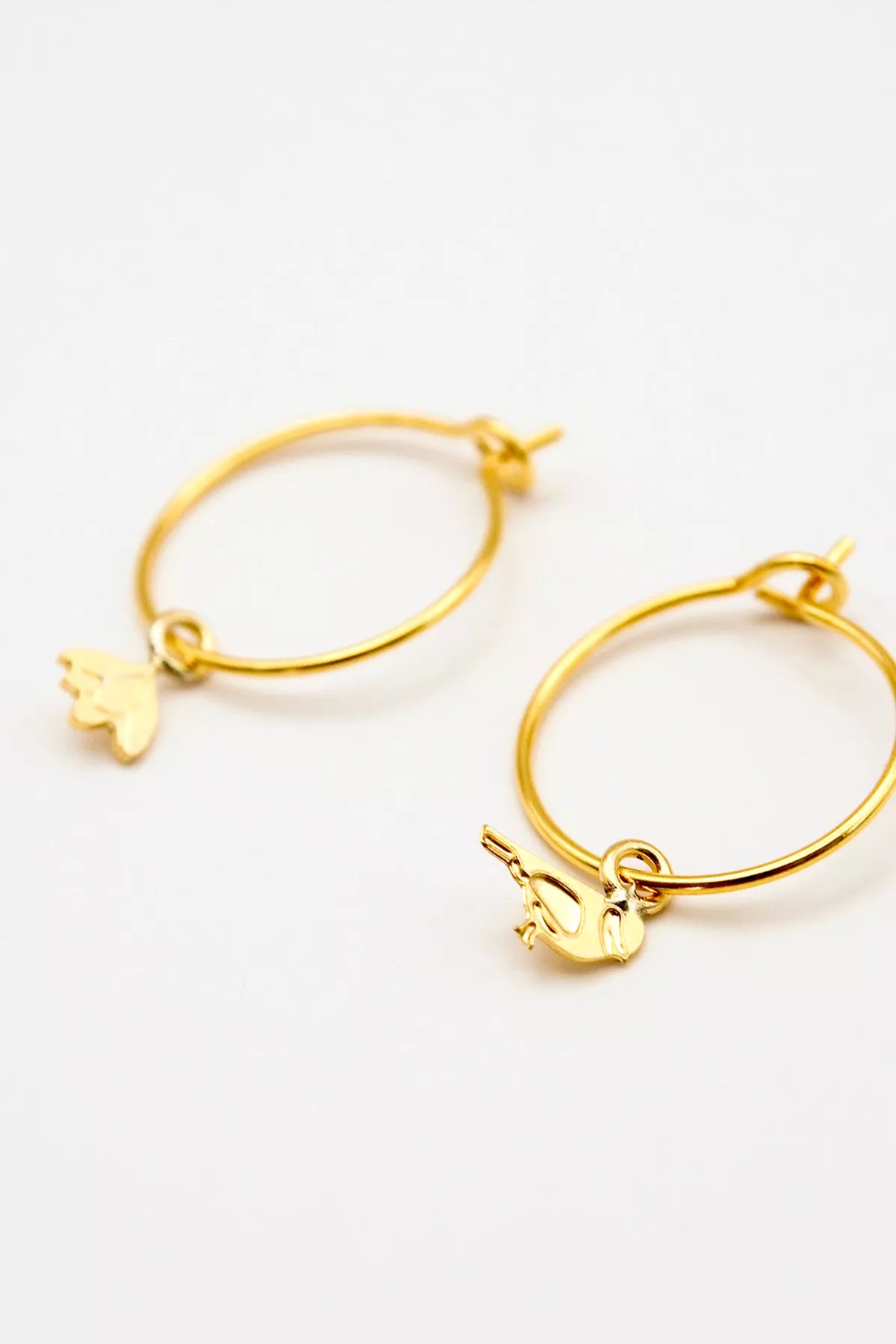 Fines créoles fleur et mésange en laiton doré à l'or fin 24 carats. Pas de trace de métal allergisant.